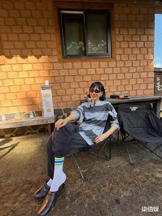 开心享受度假的孙艺珍整个人状态都很放松,舒服地躺在露营椅上,笑容全程没断过。